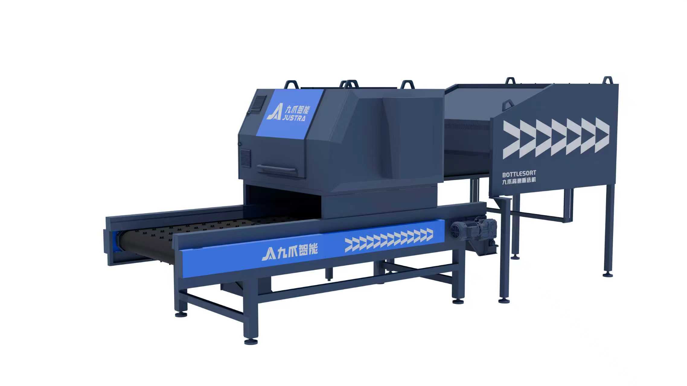 九爪高速瓶选机用于PET整瓶分选,可同时用于前端卸货除杂和后端精细化分选。一键分选蓝白砖、3A砖、绿瓶及杂色瓶,同时支持圆瓶/扁瓶分选,带标/脱标分选,单机替代3-4名人工。设备占地小、能耗低,具备来料自主学习和云端一键智能升级能力。可应用于中小型塑料打包站。