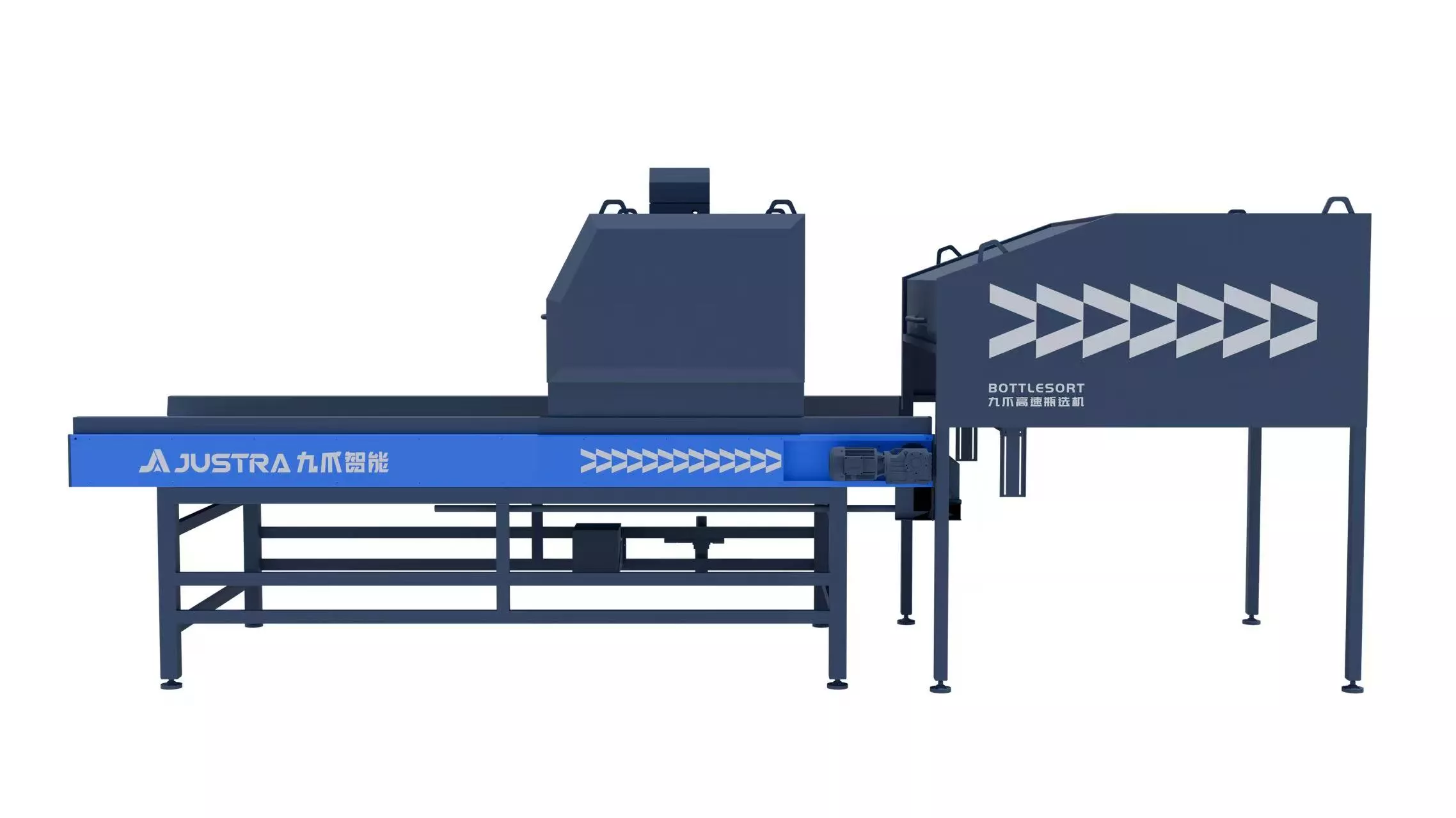 九爪高速瓶选机用于PET整瓶分选,可同时用于前端卸货除杂和后端精细化分选。一键分选蓝白砖、3A砖、绿瓶及杂色瓶,同时支持圆瓶/扁瓶分选,带标/脱标分选,单机替代3-4名人工。设备占地小、能耗低,具备来料自主学习和云端一键智能升级能力。可应用于中小型塑料打包站。