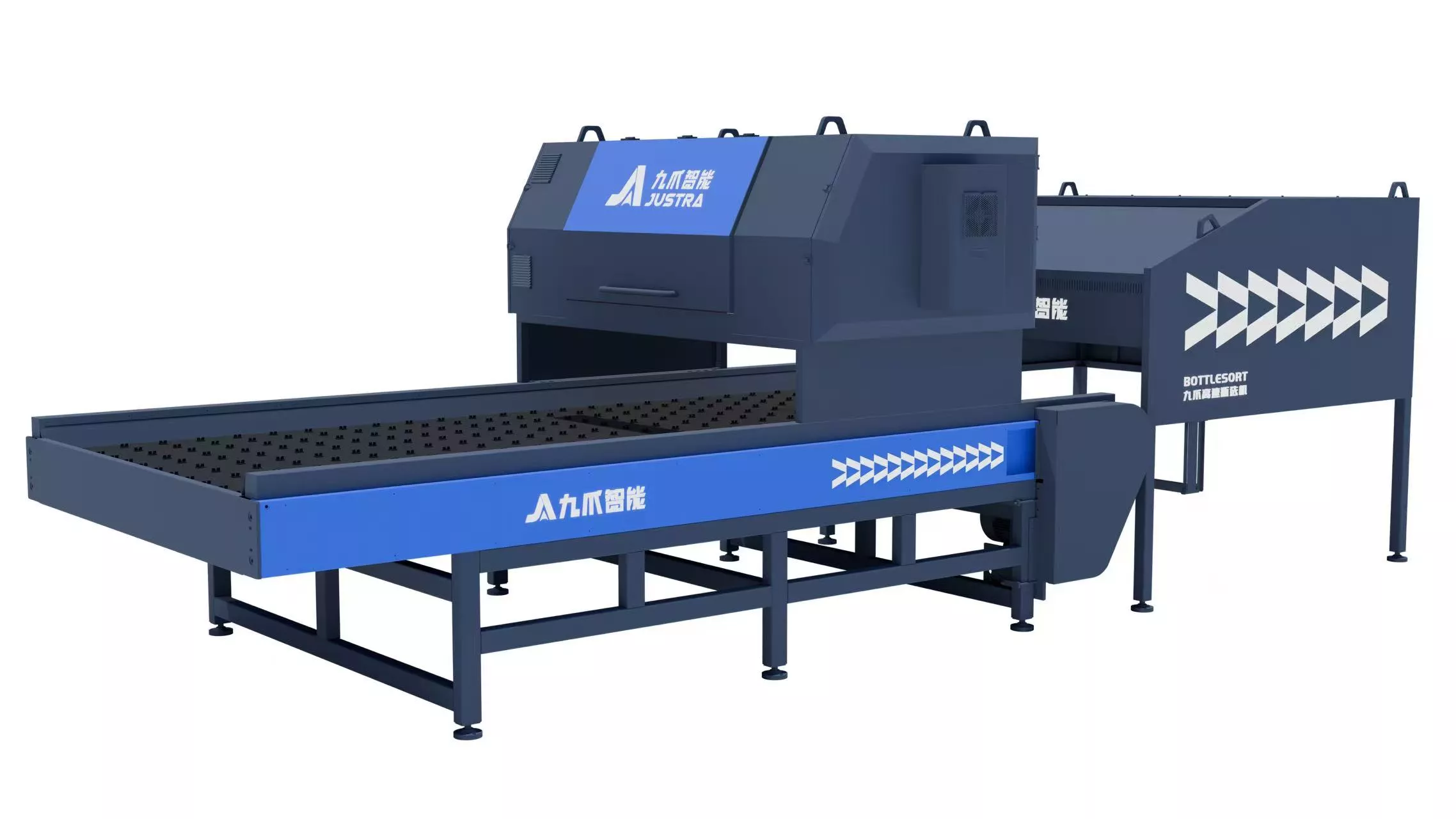 九爪高速瓶选机用于PET整瓶分选,可同时用于前端卸货除杂和后端精细化分选。一键分选蓝白砖、3A砖、绿瓶及杂色瓶,同时支持圆瓶/扁瓶分选,带标/脱标分选,单机替代3-4名人工。设备占地小、能耗低,具备来料自主学习和云端一键智能升级能力。可应用于中小型塑料打包站。